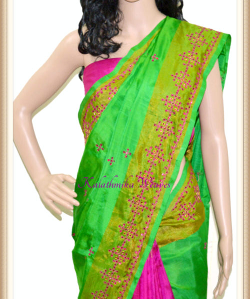 • Details: Pure Pink Silk and multishade Net With Satin Lining